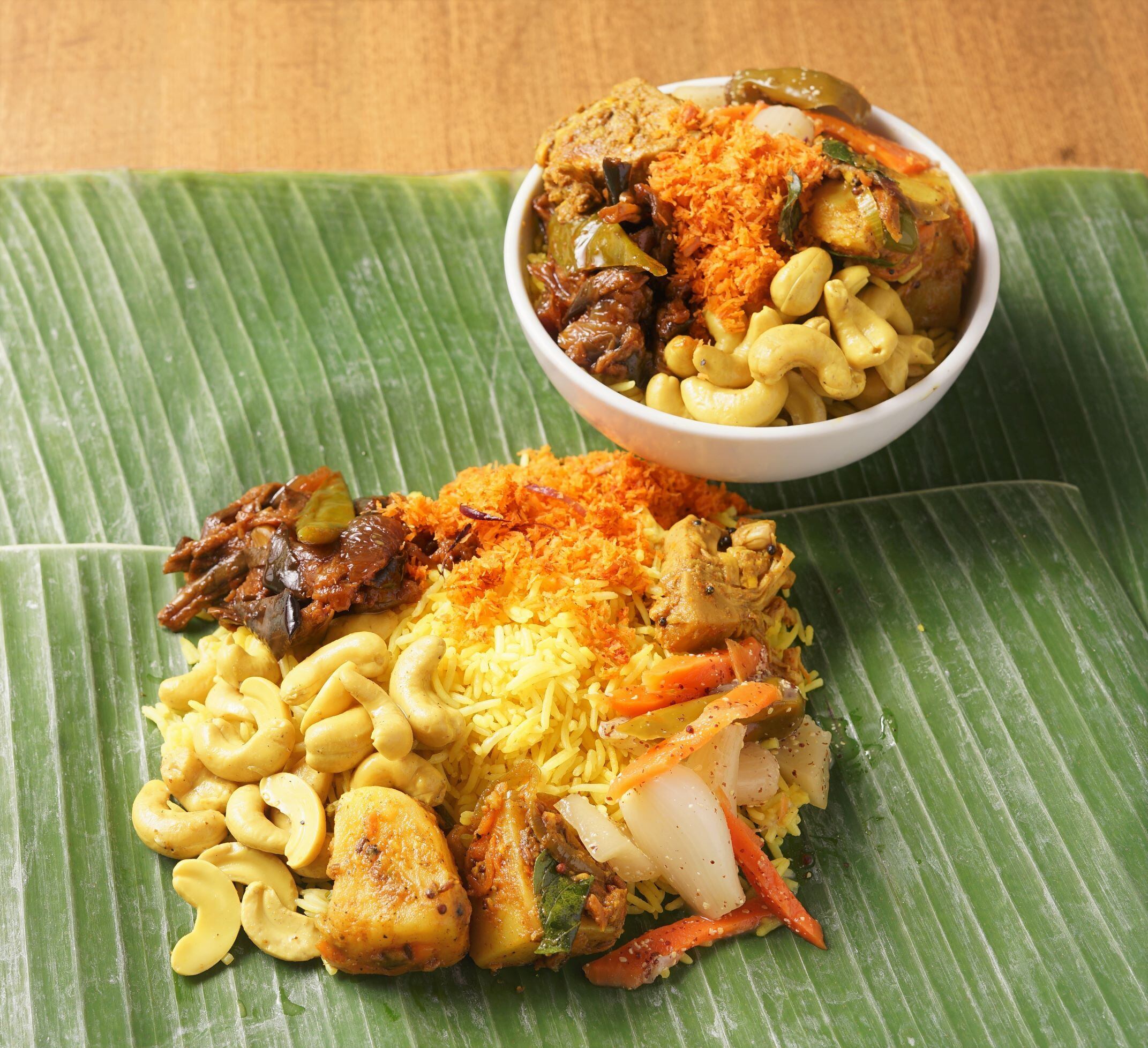 バナナの葉っぱで包んだスリランカのご馳走お弁当。全部を混ぜると五味と香りが一体となり、本場スリランカの味の虜になる事でしょう。
